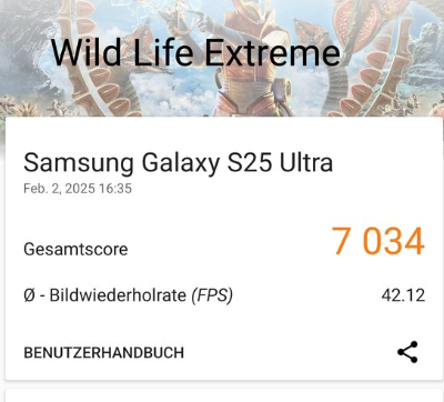 3DMark의 Wild Life Extreme 테스트에서 7,034점, 평균 42.12 FPS를 기록하며, 높은 그래픽 성능을 입증했습니다. 이는 최신 모바일 게임을 최고 옵션으로 실행하는 데 충분한 성능을 갖추었음을 의미합니다.